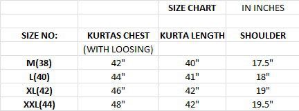 | Size | Chest (With Loosening) | Kurta Length | Shoulder |